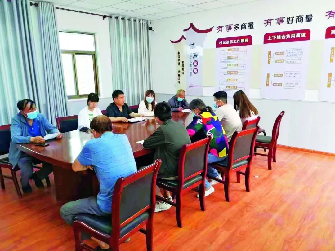 >>2022年7月20日,调解员在京当镇张家村议事厅协调处理李利扣、呼珍珍邻里纠纷化解事宜。 作者供图