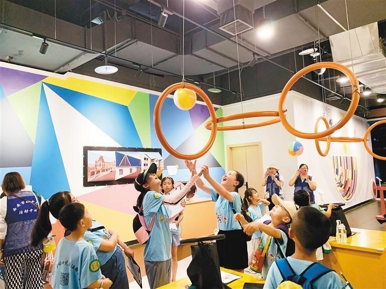 孩子们在安特大世界儿童探索博物馆体验科技互动项目 文/图 西安报业全媒体记者 袁玥