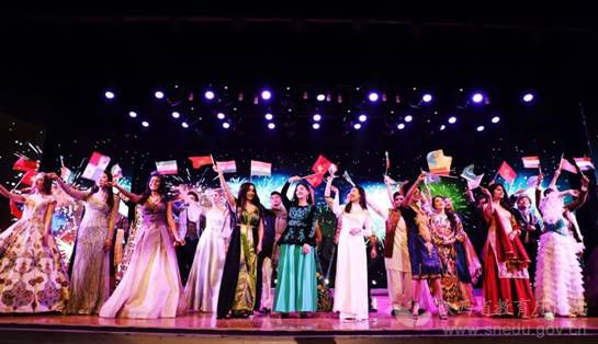 2019年陕西省留学生新年晚会各国留学生展示民族服装