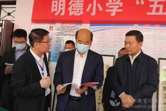 陕西省委教育工委副书记、省教育厅厅长刘建林(前排中)一行在绥德县明德小学调研