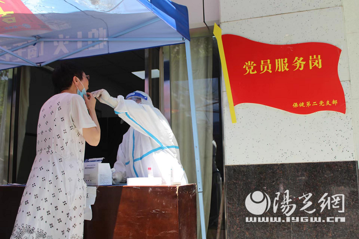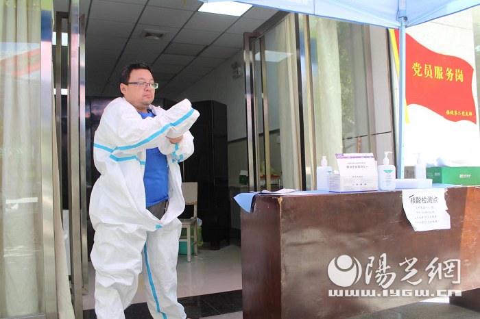 阳光讯(记者 张伟 实习生 任增贤)2022年7月10日中午1点45分,此时烈日当头,地表温度达到了40多度。宝鸡市妇幼保健院医生刘晖像往常一样准时来到金陵社区卫生服务站,动作娴熟的穿上防护服,开始了下午的核酸采样工作。