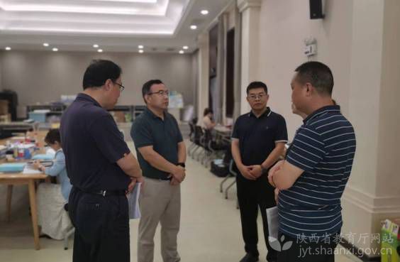 陕西省教育厅副厅长高岭(左二)在2022届高校毕业生报到证办理现场指导工作