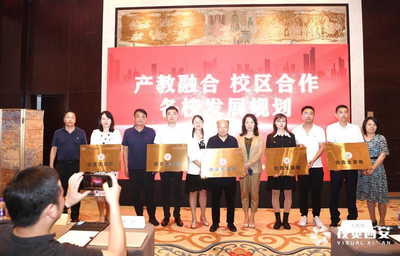 活动现场,西安文达职业高级中学与上海交大教育集团签署合作意向书。校企双方为新工科人才培养基地揭牌。西安文理学院、西安工商学院、榆林学院陕西职业技术学院、西安职业技术学院向西安文达学校授“优质生源地”牌匾。