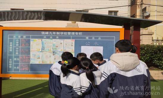 石泉县饶峰九年制学校学生在学校公示栏查看贫困学生资助发放公示
