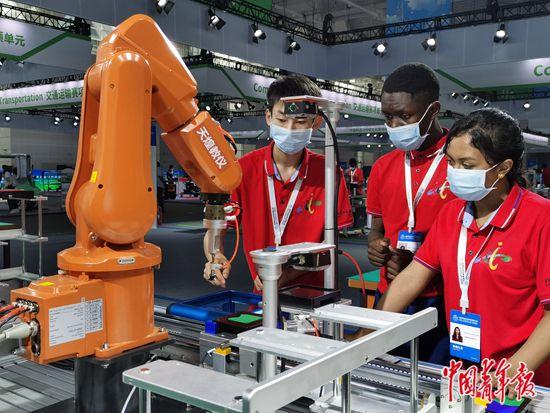 在近日举办的首届世界职业技术教育发展大会上,选手在装备制造赛项操作。中青报·中青网见习记者 杨洁/摄