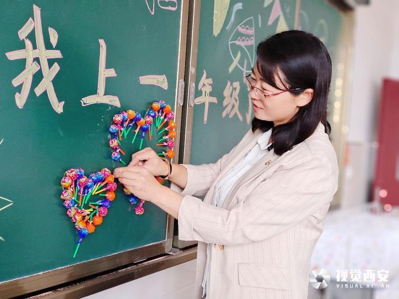 穿过美丽的教学走廊,走进装扮一新的教室,孩子们不禁发出了“哇!”的惊呼声。在老师们的提前装点下,整洁温馨的教室又多了不一样的美丽:桌面上摆放的欢迎气球、装扮一新的黑板、课桌上用丝带拉花打包的新书礼包……温馨四溢,一个个细节一个个创意,满满的创新满满的爱,让小萌新们对即将到来的小学生活充满期待。