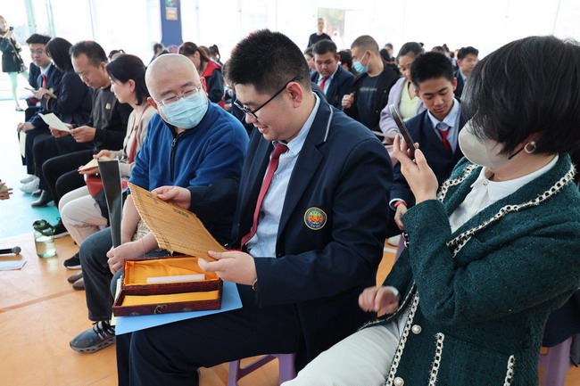 每一位学子的高中三年纪录短视频,回顾了学生们在锦园学习生活的点点滴滴,勾起心底美好回忆;每一位家长的深深之爱与殷殷之盼,打动了在场的师生们,那些浓情而热切的话语满溢着如海亲情。家长与孩子互换书信,阅读家书,纸短情长,道不尽心中所爱。