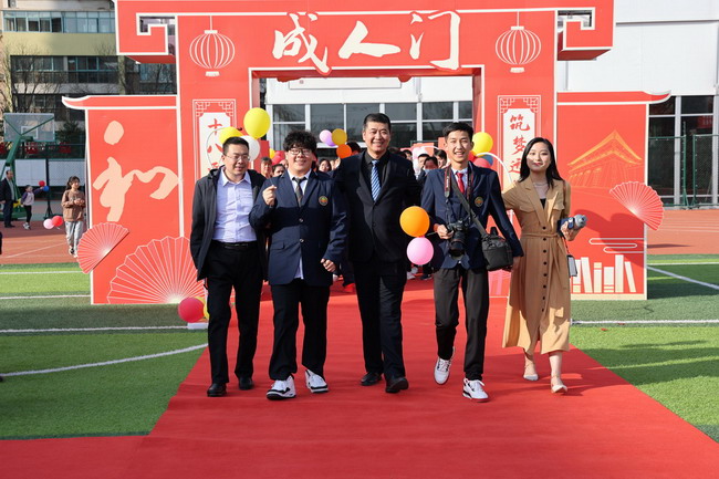 最后,校领导、师长们挽着高三学子穿过成人门,以此隆重的仪式起航青春,助力人生。