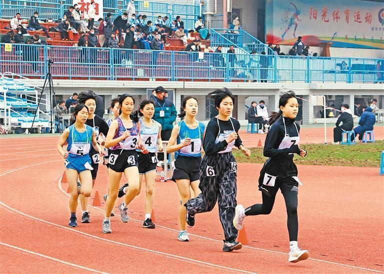 女子中长跑比赛现场。 (西安报业全媒体记者 谢伟 摄)