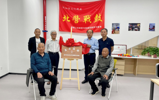 在交流座谈后,梅创社副校长和罗艺峰教授共同为“北营战鼓”保护研究传承实践教育基地揭牌。