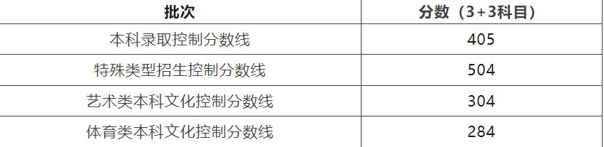 2023年上海市普通高等学校秋季招生本科各批次录取控制分数线经审定公布如下: