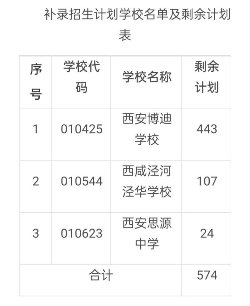 我市3所学校剩余招生计划574人。第二次征集志愿对象:西安市城六区526分及以上,未被任何学校录取且符合我市中考报名政策规定的考生。