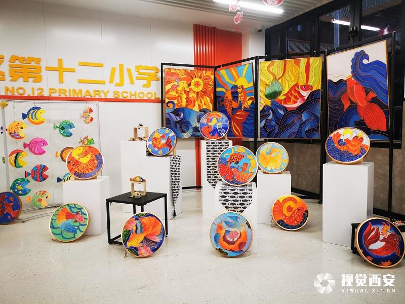 走进门厅,这里方寸之间却有着别样的风景。展架上,琳琅满目的作品均是美术社团的学生匠心所做,每组绘画作品都蕴含着每个星跃学子“鱼跃龙门”的梦想。学生们还以鱼为主题,运用沥粉画、版画、剪纸等各种形式进行绘画创作,表现对未来的美好祝愿。