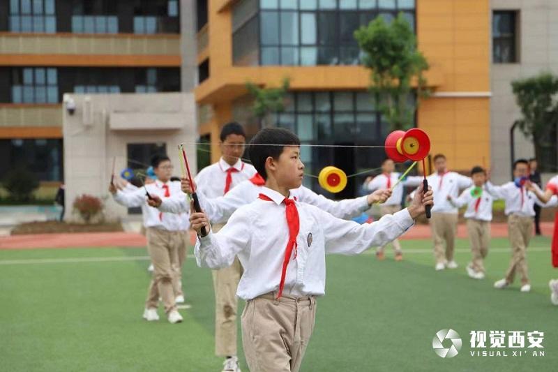 西安新闻网讯 当清晨的第一缕阳光洒向化龙之地,一座气势磅礴,充满生命活力的建筑群就会映入眼帘;当你走近这座建筑群,朗朗的读书声便环绕耳际……琳琅满目的学生作品展示于门厅,让方寸之地有了别样的风景;图书阅览室成为师生们最喜欢打卡的地方,每天都会有不同的班级在这里进行午读,享受阅读时光;操场上,孩子们尽情驰骋,花样空竹、红拳武术操更是成为一道亮丽风景线……