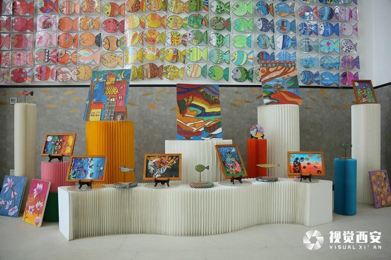近两年校园发生的点点滴滴变化,吕瑞也是看在眼里,感受在心里。作为学校一名美术老师,近一年来,她和美术组的老师们结合“鱼跃”文化和星彩美术课程,将文化融入到环境创设中。看到校园各个角落学生们的艺术作品时,她发自内心地欣喜和自豪。“鱼跃文化寓意着每一个学生通过我们的课程都能够‘鱼跃成龙’,实现他们的人生飞跃,相信孩子们的艺术自信也会大大提升。希望每个同学都能像一条小鱼一样,在艺术的海洋里遨游。”